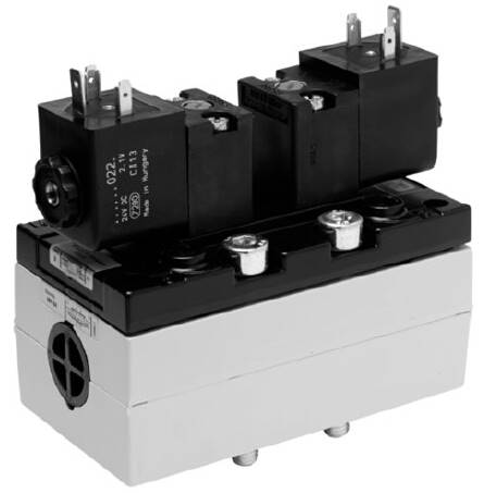 ISO 5599-1ISO 3Qn = 4100 l/min底板连接预控阀的宽度 30x22 mm CNOMO压缩空气 接口 出口 按照标准ISO 5599-1制造的接地板电气连接 多芯插头, ISO 4400, A型手动控制装置 锁定式, 按钮式中位封闭、技术备注:不可超过小控制压力,否则会导致故障电路和可能发生阀故障!