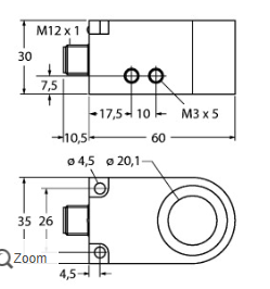 结构尺寸 环型传感器, W30, 60 x 35 x 30 mm