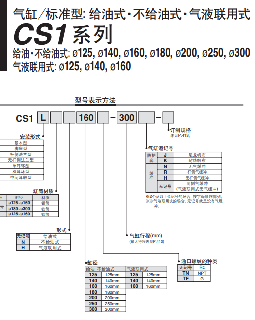 CS1 系列 气缸 标准型:给油式 不给油式 气液联用型