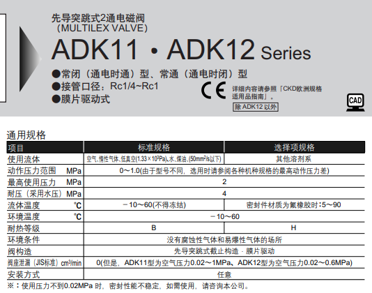 日本CKD的多种流体2通电磁阀
