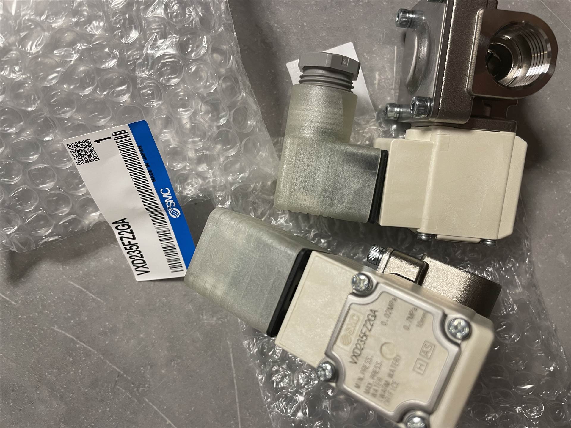 日本SMC电磁阀它由阀体、阀罩、电磁组件、 弹簧及密封结构等部件组成,动铁芯底部的密封块借助弹簧的压力将阀体进气口关闭。通电后,电磁铁吸合,动铁芯上部带弹簧的密封块把排气口关闭,气流从进气口进入膜头,起到控制作用。当失电时,电磁力消失,动铁芯在弹簧力作用下离开固定铁芯,向下移动,将排气口打开,堵住进气口,膜头气流经排气口排出,膜片恢复原来位置。在我们的制氧设备中,在透平膨胀机进口薄膜调节阀的紧急切断等处有应用.